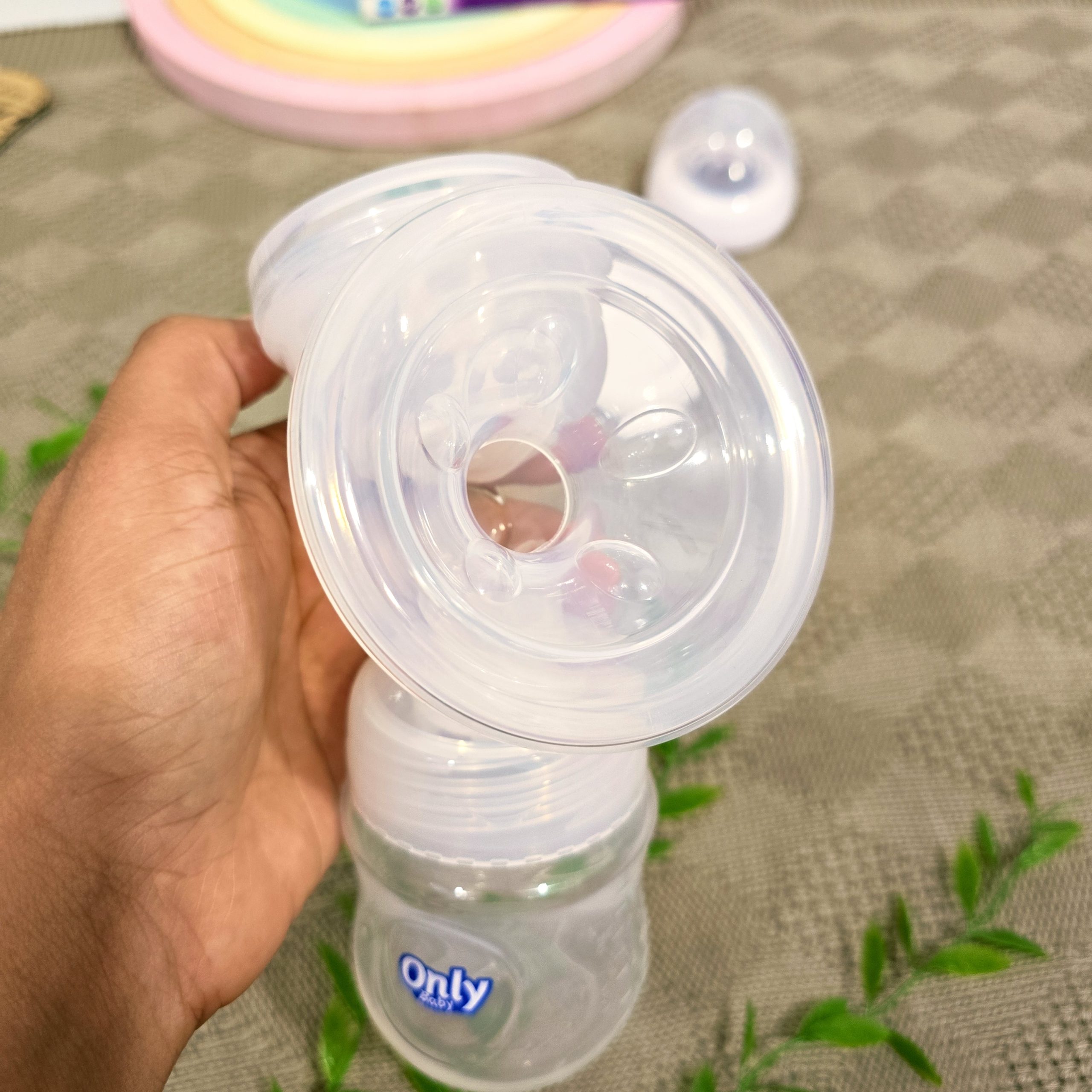 شیردوش دستی اونلی بیبی (Only Baby) با طراحی ارگونومیک، سری سیلیکونی نرم و عملکرد بی‌صدا، امکان تخلیه راحت و طبیعی شیر مادر را فراهم می‌کند.
